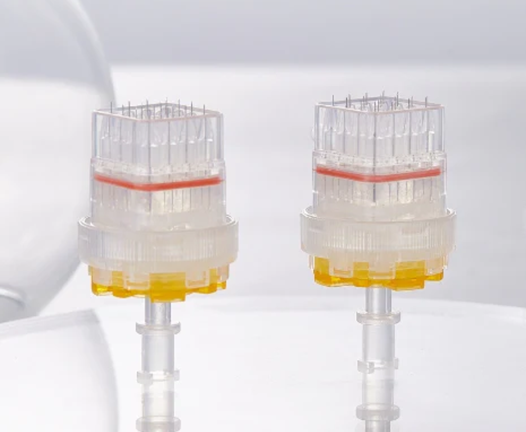 Nuestro conjunto de 9 pequeñas agujas está diseñado para asegurar una distribución uniforme y precisa del producto, garantizando resultados visibles y eficaces. Estas agujas funcionan simultáneamente, maximizando la eficiencia y reduciendo el tiempo requerido para realizar procedimientos de mesoterapia. Gracias a su tecnología avanzada, ofrecen una experiencia superior que se adapta perfectamente a profesionales en busca de calidad y rendimiento.